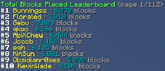 and will show you players with the top 10 blocks placed. You can do /lb (number)